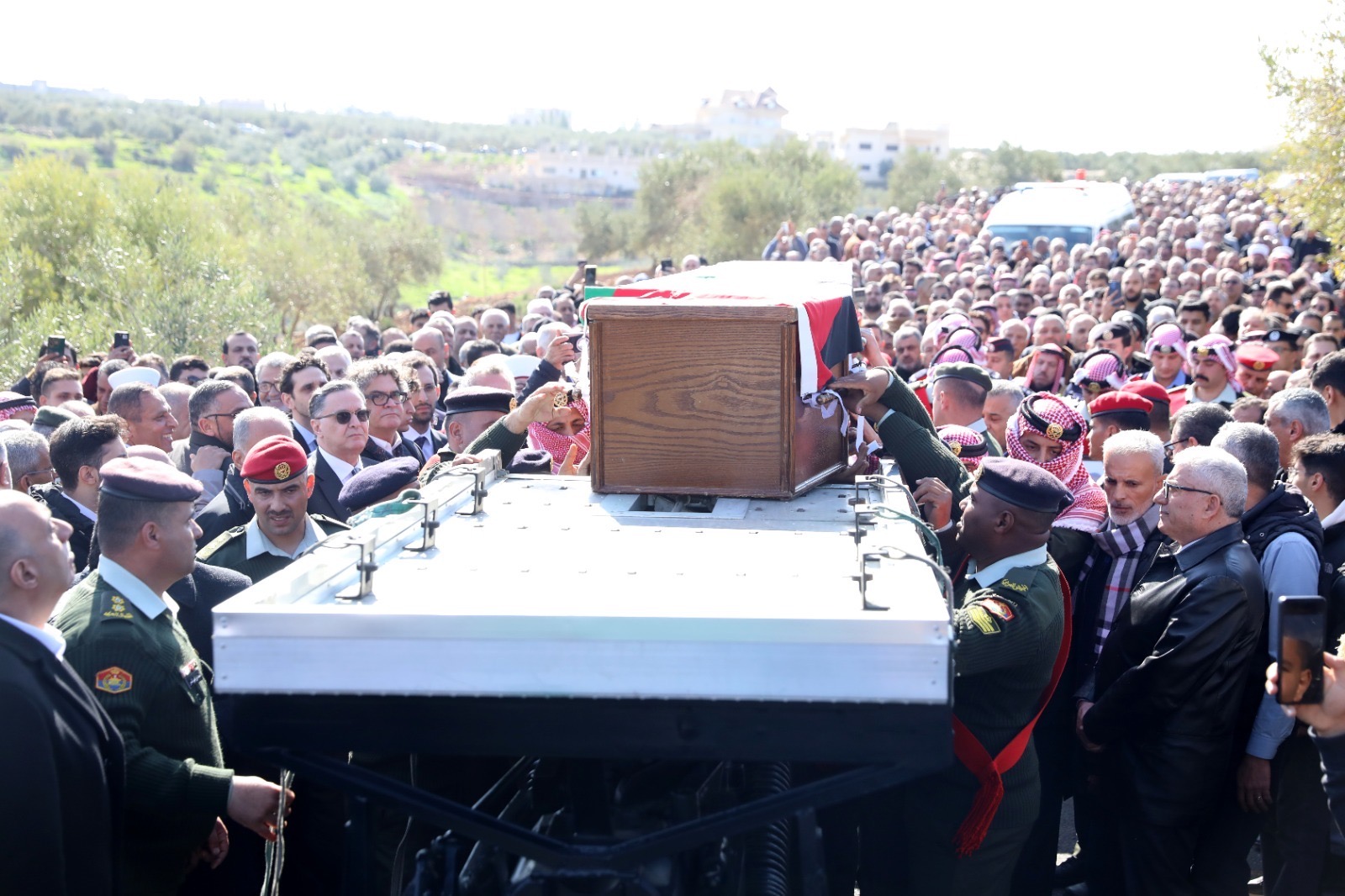 *إربد- 4 شباط – 2026-* مندوبا عن جلالة الملك عبدالله الثاني وسمو الأمير الحسين بن عبدالله الثاني، ولي العهد، شارك رئيس الديوان الملكي الهاشمي يوسف حسن العيسوي، اليوم الأربعاء، في تشييع جثمان رئيس الوزراء الأسبق المرحوم أحمد عبيدات، الذي وُري جثمانه الثرى في مسقط رأسه في بلدة حرثا في لواء بني كنانة بمحافظة إربد.