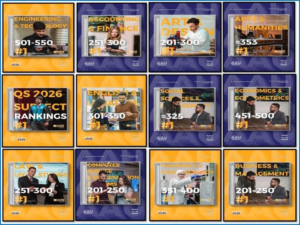 تواصل جامعة عمان الأهلية تعزيز مكانتها الأكاديمية عالميًا، حيث حققت نتائج متميزة في تصنيف QS العالمي للتخصصات لعام 2026.