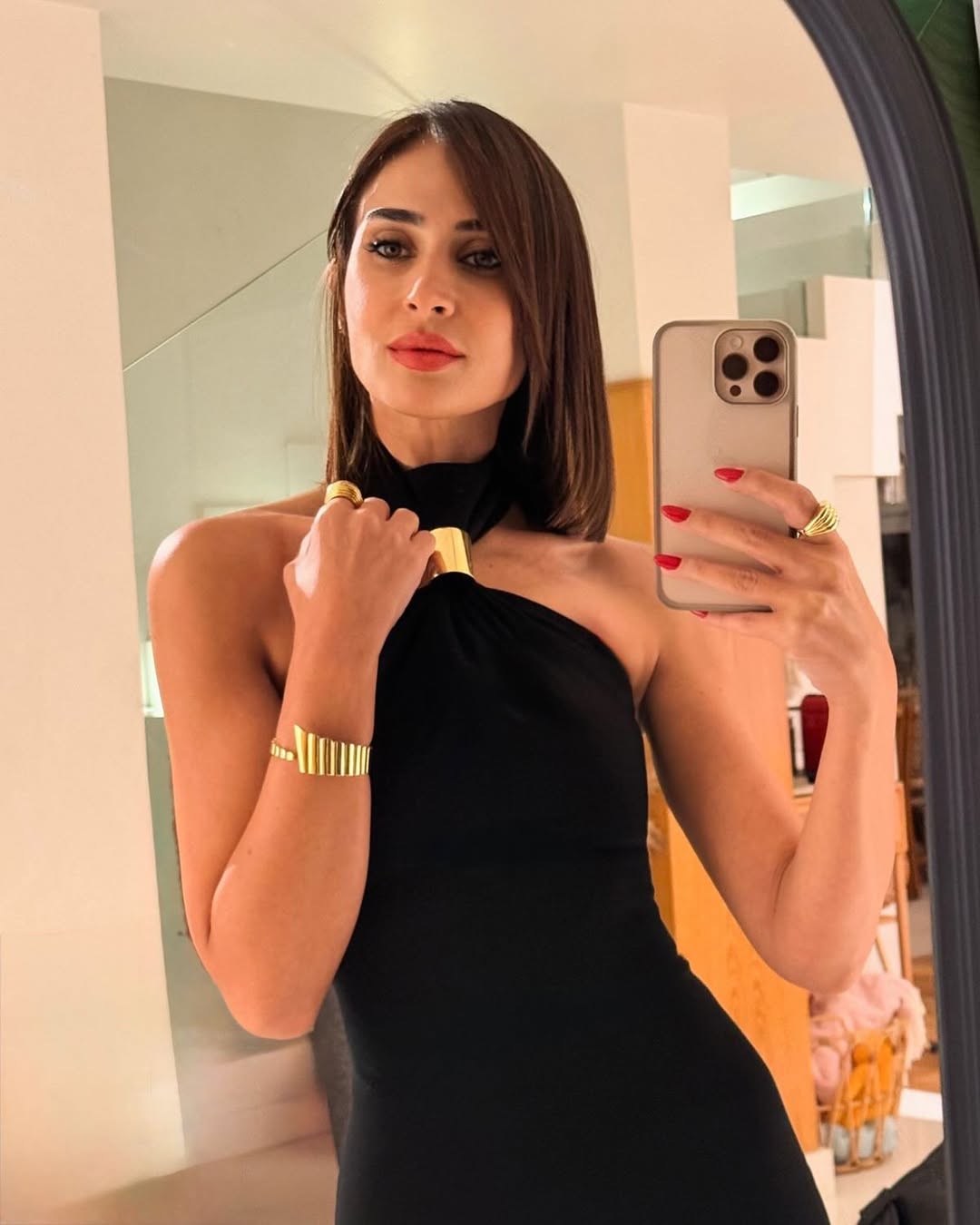 آن الرفاعي بفستان ناعم مزين بإكسسوارات ذهبية