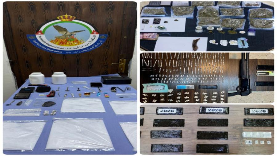 وأكّد أنّ فرق مكافحة المخدرات بالتنسيق مع مديريات الشرطة المختصّة وقوات الدرك نفذت 4 حملات أمنيّة على تجّار ومروجي المخدرات في عدّة محافظات منها معان، حيث أفضت لإلقاء القبض على 10 مطلوبين ومروّجين وتجار للمخدرات، وجرى في محافظة الزرقاء إلقاء القبض على مروّجَين اثنين ضمن الحملة الأمنيّة، فيما أُلقي القبض في حملة نفذت في محافظة عجلون على أربعة متورطين بقضايا مخدرات، فيما دوهمت ثلاثة مواقع بحملة في لواء الشونة الجنوبية أُلقي القبض خلالها على شخصين أحدهما مصنف "خطر" متورطَين بزراعة الماريغوانا المخدرة، وضُبطت في كافّة الحملات كمّيات كبيرة من المواد المخدرة وأشتال الماريغوانا.