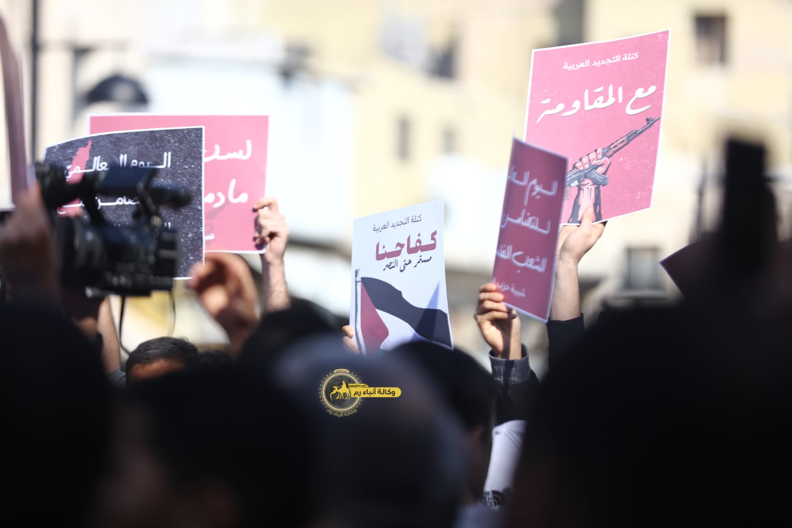 وردد المشاركون هتافات تشدد على وحدة الموقف العربي ورفض كل أشكال التطبيع، معتبرين أن الدفاع عن فلسطين هو دفاع عن الهوية والكرامة الإنسانية.
