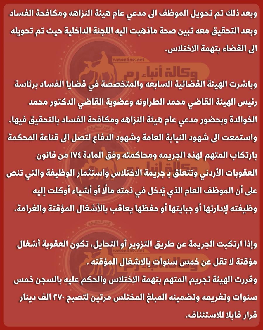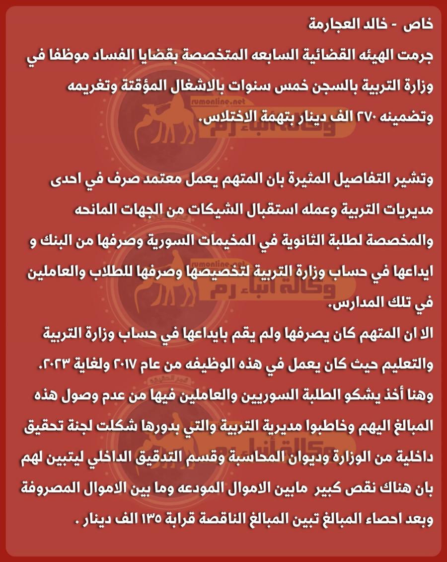 السجن لموظف تربية خمس سنوات وتضمينه مئات الآلاف .. تفاصيل مثيرة تنشرها "رم"