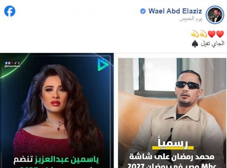 ولم يكشف وائل عبد العزيز أي تفاصيل إضافية عن الصورة أو طبيعة التعاون المحتمل، الأمر الذي دفع المتابعين الى تداول العديد من التوقعات بشأن وجود عمل مشترك يجمع النجمين في الموسم الدرامي المنتظر.